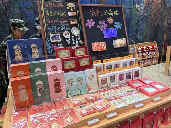 “敬告同胞”系列主题帆布袋、纸雕灯、创意集章本、“非遗+红色”饰品、特色冰箱贴……文创售卖区琳琅满目;百色起义1929时光相机和红船“麽乜”特色“打卡”墙,手绘涂鸦明信片,扛枪“麽乜”和红船“麽乜”彩色套章等,红色文化体验区令人流连忘返。在2025年广西文化旅游大会上,百色起义纪念馆红色文创助力点燃盛会热情,受到八方来客和广大市民的喜爱。