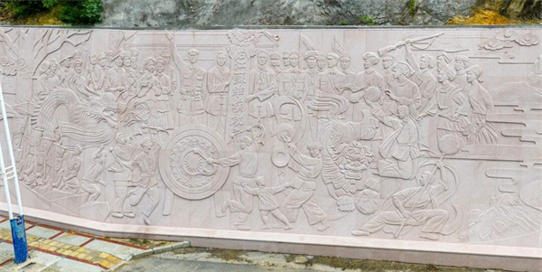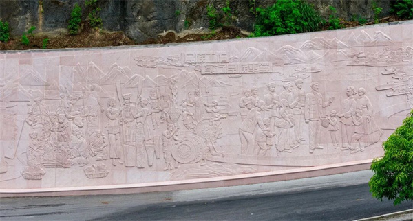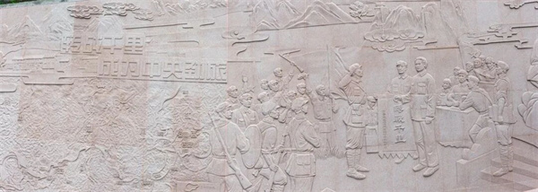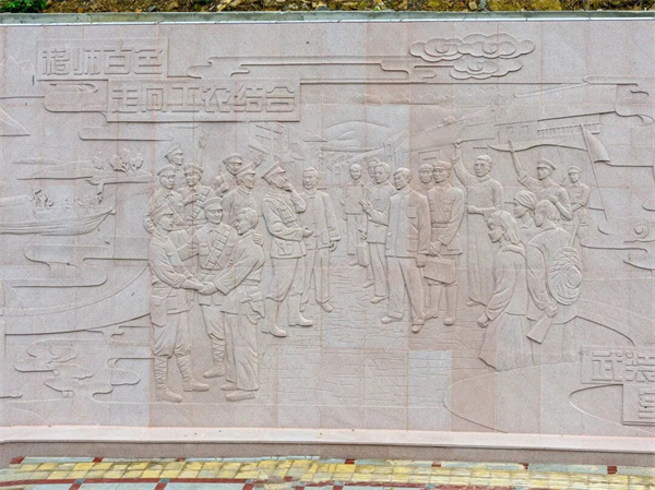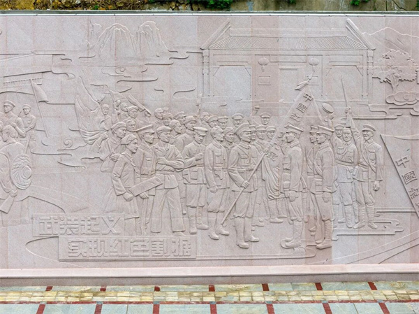 1929年12月11日,邓小平、张云逸、韦拔群等同志领导和发动百色起义,建立中国红军第七军和右江苏维埃政府,创建全国瞩目的右江革命根据地,推动全国革命形势发展,在中国革命史上写下光辉篇章。百色起义的实践,铸就了“百折不挠、实事求是、依靠群众、团结奋斗”的优良传统,驻足浮雕墙前,能从生动的雕刻中重温革命历史、感悟初心使命。