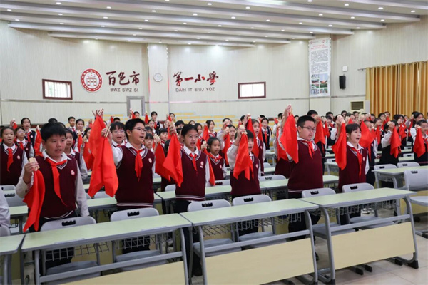 为纪念中国人民抗日战争暨世界反法西斯战争胜利80周年,迎接中国人民解放军建军100周年,10月30日上午,百色起义纪念馆联合南昌八一起义纪念馆,走进百色市第一小学(八一希望学校)开展“百年辉煌 八一荣光——宣讲共筑强军梦”主题活动,为约150名师生上了一堂生动的爱国强军思政课。