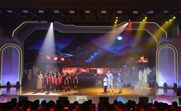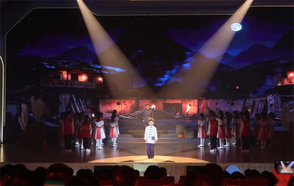 展演以“歌声颂榜样,新风启未来”为主题,精心策划了“少年担当”“薪火相传”“未来领航”三大篇章,来自全区各市的合唱队伍、近千名少年儿童以饱满的热情和纯真的歌声,唱响了时代主旋律,全面展现了广西少年儿童朝气蓬勃、奋发有为的精神风貌。全国“新时代好少年”百色起义纪念馆红领巾讲解员文明实践队受邀选派代表参加此次活动,其中红领巾讲解员李家毅、韦懿桃、黄俊霖、黄小米担任“薪火相传”篇章节目的主讲人,何秋鸣以及百色起义纪念馆讲解员梁媛、黄尚城参演情景创意表演《红星歌》,并在现场与主持人展开访谈交流。
