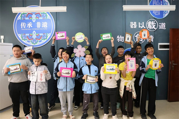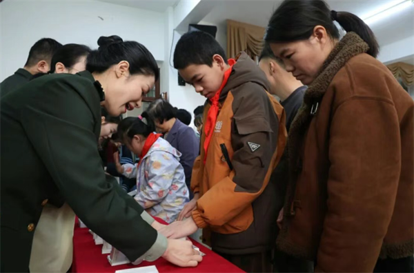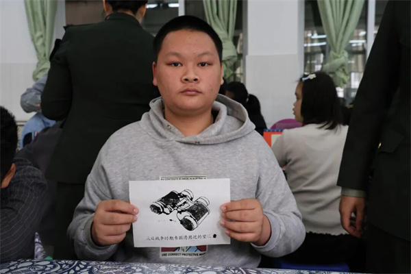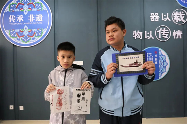 红色手工体验成为孩子们最喜爱的环节。志愿者们“一对一”带领孩子们制作壮锦装饰画、体验文物拓印,在动手实践中感受民族艺术与红色历史的魅力。完成作品后,孩子们集体展示自己的作品,脸上洋溢着满满的成就感。