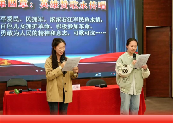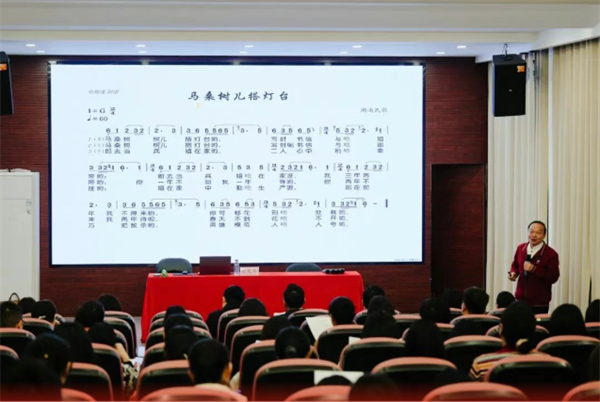 开班仪式后,第一期培训正式开讲。百色市委党史研究室(百色市地方志编纂委员会办公室)三级调研员、广西艺术学院客座教授、百色市社会科学特聘专家田茂华应邀作《红色经典作品赏析》专题辅导。田茂华毕业于中国音乐学院,长期深耕红色文化研究与传播,在文学、音乐、授课等方面经验丰富。授课中,他以百色起义歌曲等红色经典作品为例,通过赏析、教唱等形式,生动诠释红色基因的精神内核,帮助学员在艺术感染中深化对红色文化的理解,提升红色故事讲述能力。整场授课立意深远、史料翔实、形式活泼,赢得学员热烈掌声。