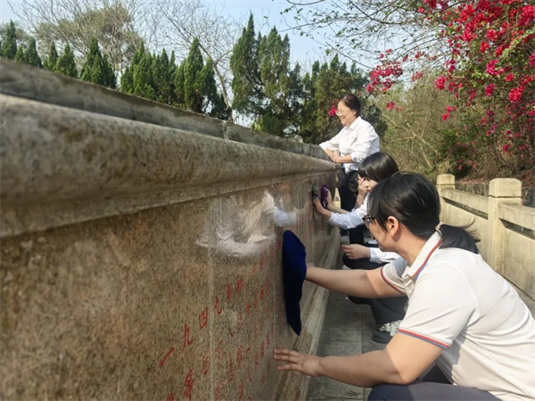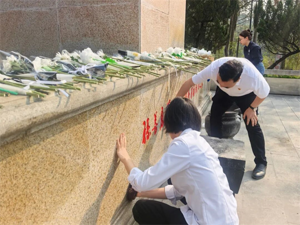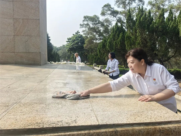 劳作中,大家神情肃穆,心怀敬畏,每一次擦拭都饱含敬意,每一次清扫都承载思念。
