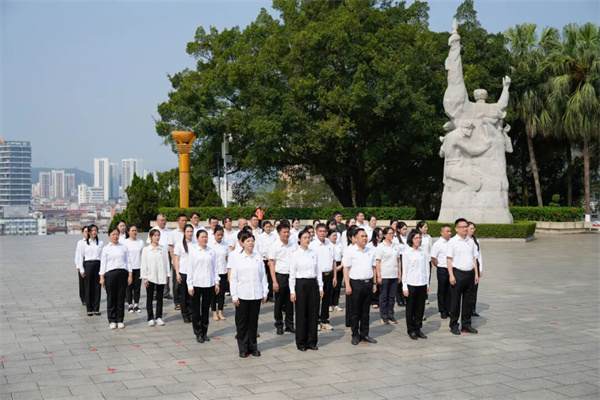 全体干部职工肃立列队,静默追忆,低头默哀,向纪念碑敬献花篮、整理缎带,深切缅怀为百色起义和人民解放事业英勇献身的革命先烈,表达用心用情守护和传承红色文化的坚定信念。